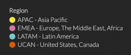The size of each dot shows how often each genre made it into Netflix's top 10 list in each month of each country.